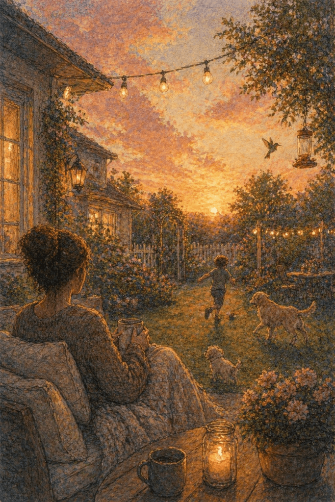 I used to imagine it so clearly. A space where everything had intention. Dinners on the table, not extravagant, just consistent. A yard with flowers I planted myself, hummingbird feeders catching the light in the afternoon. A patio with soft string lights where evenings stretched a little longer than they should because no one was in a rush to leave them.
